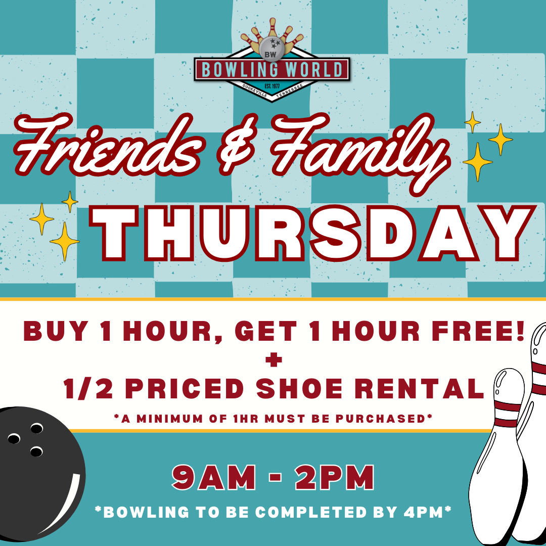 Special Package Deals! Option #1 $83.44 + taxes Includes: 2 hours of bowling for up to 6 per lane with shoes Large fountain drinks with refill Large family-size order of fresh nachos Option #2 $91.95 + taxes Includes: 3 hours of bowling for up to 6 per lane w/ shoes Large fountain drinks w/ refill...