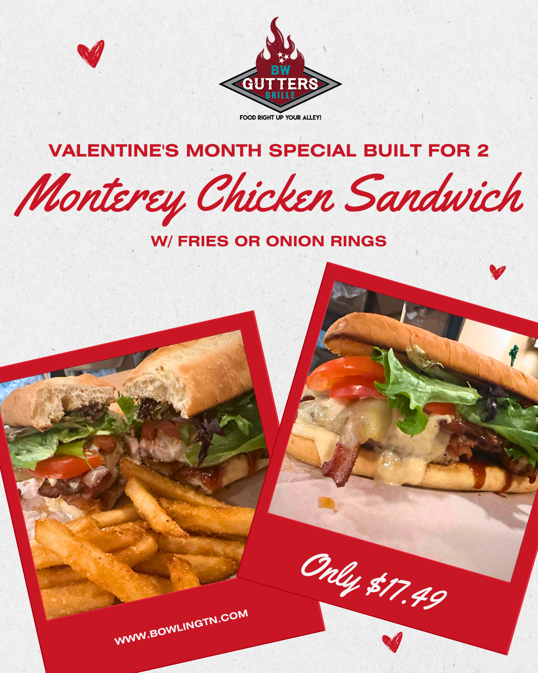 Scrumptiously Built for 2 Monterey Chicken Sandwich – $17.49 Grilled to perfection and made just the way you like it! Customization options: Cheese: Pepper Jack or Provolone Sauce: BBQ or Garlic Aioli Served whole or cut in half for sharing Pair it with crispy fries or homemade beer-battered onion rings for the perfect meal! 📅...