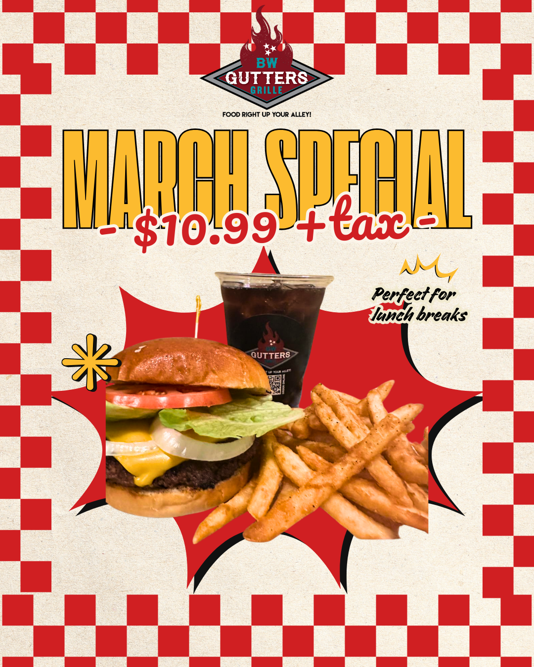 $10.99 + tax 100% all-beef Cheeseburger Combo w/ crispy fries and a medium fountain drink